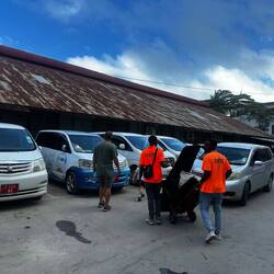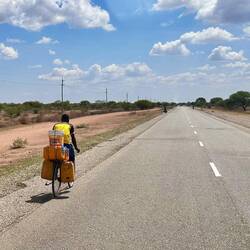 Fahrräder prägen das Straßenbild intensiv. Wahrscheinlich nicht nur wegen des aktuellen Treibstoffmangels, sondern schon lange. Wer ein Fahrrad besitzt, gilt hier bereits als wohlhabend genug, um etwas dazuverdienen zu können – etwa indem er Menschen wie ein Taxi von A nach B bringt oder Waren transportiert. Wir sehen manchmal sieben oder acht Getränkekisten auf einem einzigen Fahrrad, perfekt ausbalanciert. Motorräder und Minibusse gibt es ebenfalls, doch viele von ihnen stehen momentan ebenfalls an den Tankstellen.
