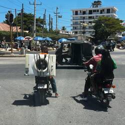 Am nächsten Morgen verabschieden wir uns und fahren weiter nach Dar es Salaam. Die Stadt wirkt auf uns wie ein Moloch: dichter Verkehr, Tuk-Tuks, Mopeds, Busse, alles gleichzeitig. Dazwischen stehen marode Gebäude, unterbrochen von modernen Banken, Hotels und Neubauten. In der Altstadt sind die Gassen eng, die Bürgersteige kaputt, alles wirkt fordernd und anstrengend.