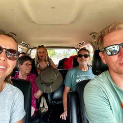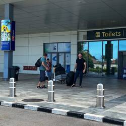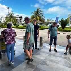 Draußen wartet bereits ein Mann und übergibt uns einen Mietwagen. Das Auto ist etwas verbraucht, aber groß genug für eine große Familie inklusive Gepäck. Wir fahren weiter zum Flughafen, denn dort kommt Reginas Familie an. Die Eltern und ihr Bruder sind schon da und haben bereits gefrühstückt. Als Marie sie sieht, läuft sie aufgeregt los und umarmt alle. Ein wunderschöner Moment.