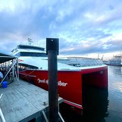 Am Hafen werden wir sofort von vielen Männern umringt, die unser Gepäck tragen wollen. Einige laufen sogar neben dem Auto her. Wir bleiben freundlich, aber bestimmt und tragen alles selbst. Ein Mitarbeiter der Fährgesellschaft hilft uns beim Ausdrucken der bereits online gebuchten Tickets, dann dürfen wir weiter. Es ist wuselig, unübersichtlich, alles drängt sich durch einen Scanner. Wir achten darauf, das Gepäck und Marie beisammen zuhalten, warten kurz und schon heißt es Boarding.