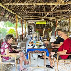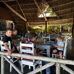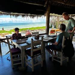 Wir frühstücken meist in unserer Unterkunft, ganz in Ruhe. Währenddessen sorgt Abdula leise für Ordnung in den Zimmern. Abends gehen wir manchmal essen, manchmal kochen wir selbst. Die Anlage bietet viel Schatten, ein angenehmer Wind weht fast immer. Bei 35 Grad halten wir uns tagsüber im Schatten oder unter Palmen am Strand, bzw. im Wasser auf.Read more