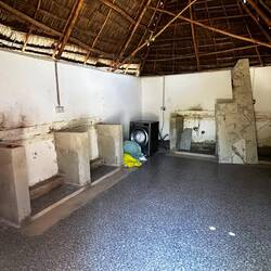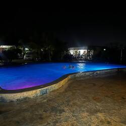 Am Abend kehren wir zurück. Jetzt sind drei junge Männer da, sichtbar bemüht. Der Strom läuft nun wieder. Sie kippen Chemie in den Pool, reinigen ihn und füllen frisches Wasser nach. Der Kühlschrank und das Geschirr werden gereinigt, der Barbereich aufgeräumt. Eine Küche befindet sich in einem Nebengebäude im Bau und soll übermorgen fertig gestellt werden.