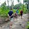 Danach decken wir den Frühstückstisch besonders schön. Es gibt Eier, lokale Leckereien und eine Auswahl an frischen Früchten. Viele davon wachsen direkt hier in der Ferienanlage: Bananen, Papayas, Mangos und natürlich Kokosnüsse. Morgens pflücken wir die Früchte einfach vom Baum im Garten, frischer geht es kaum. Wir sitzen zusammen, genießen das Frühstück und lassen den Tag ganz bewusst langsam starten.