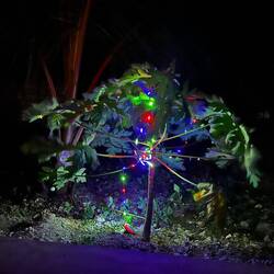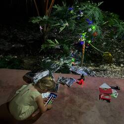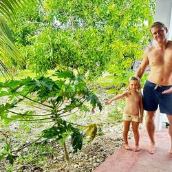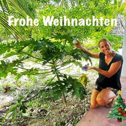Wir feiern Weihnachten auf Sansibar und schon am Heiligabendmorgen fühlt sich alles ganz besonders ruhig und leicht an. Der Tag beginnt ohne Eile. Nach dem Frühstück dekorieren wir zuerst unseren Weihnachtsbaum, der hier natürlich keiner ist, Es handelt sich um eine junge Papaya-Pflanze die diese Rolle übernehmen darf. Aus Alufolie basteln wir Christbaumschmuck, und aus Maries Malbuch schneiden wir angemalte Tiere und Formen aus. Eine Lichterkette legen wir über die Papaya-Pflanze, und plötzlich steht er da – unser ganz besondere Weihnachtsbaum. Wir freuen uns jetzt schon auf den Abend.