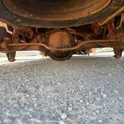Der Wechsel der Vorderräder klappt schnell, an der Hinterachse sitzen jedoch die Radbolzen extrem fest. Mit zusätzlichem Werkzeug der Hafenarbeiter bekommen wir sie schließlich gelöst. Beim Absenken kippt der Wagen plötzlich zur Seite und landet auf den Holzrädern. Jerome kann sich im letzten Moment in Sicherheit bringen, wird aber von der zufallenden Hecktür an Kopf und Schulter gestreift. Zum Glück bleibt es bei Kratzern.