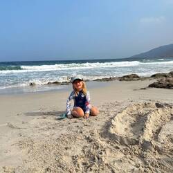 Später springen wir in den Pool, lachen, planschen ein bisschen. Wir fahren zum Meer welches schön in der Sonne glitzert, der Sand ist warm, und alles fühlt sich friedlich an. Wir genießen einfach den Moment.