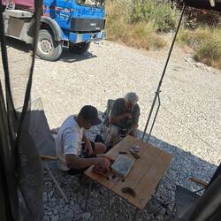 Besser als das nur rudimentär ausgestattet, da Polizeihütchen an der Straße sieht es hier auch nicht aus. Jens geht hinein, Regina und Marie warten im Camper. Was fünf Minuten dauern sollte, zieht sich: Der Chef wirft uns vor, wir hätten eine Strafe zu bezahlen, weil wir uns nicht vorher zum Übernachten gemeldet haben. Jens erklärt unsere Reise und dass wir sowas noch nie hätten machen müssen. schließlich sprach Jens zu ihm, dass er bereits eine Rufnummer mitgeteilt bekommen hatte und fragt den Polizisten, ob es die richtige sei. Er zeigte die zwischendurch eingetippte Rufnummer auf dem Telefon. Die Nummer kannte der Polizist nicht und fragte nach was es für eine Nummer sei. Daraufhin zeigte Jens einen Screenshot auf seinem Handy mit den Rufnummern der Anti-Korruptions-Hotline der Regierung. Plötzlich wollen sie nur noch die Personalien feststellen. Hierzu musste Jens mit einem weiteren Beamten der örtlichen Kriminalpolizei ins Büro nach nebenan. Alle möglichen Informationen wurden handschriftlich auf ein DIN A4 Fragebogen eingetragen. Bemerkenswert war dabei, dass die augenfarbe blau und die haarfarbe blond auf dem Fragebogen gar nicht vorhanden und dem Beamten gar nicht bekannt waren. Zwischendurch kam auch noch Regina um etwas Druck zu machen. Nachdem wir uns dann endlich verabschiedet hatten und schon im Auto saßen, kam wieder ein anderer Polizist und sagte, wir müssten noch mal zum Commander. Jetzt wird's uns zu viel! Wir sagen entschieden: „Jetzt reicht’s aber wirklich!" und fahren los.