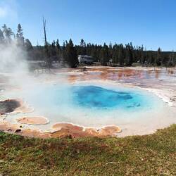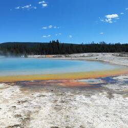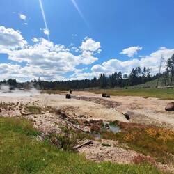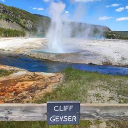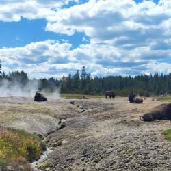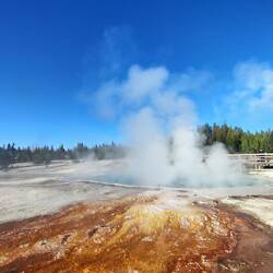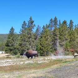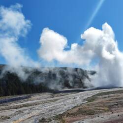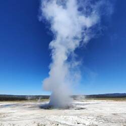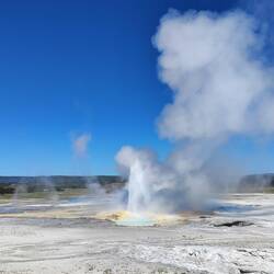 Wir fahren zum Geysir-Feld "Old Faithful".