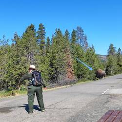 Unser heutiger Übernachtungsplatz steht leider im Zeichen eines Waldbrandes.