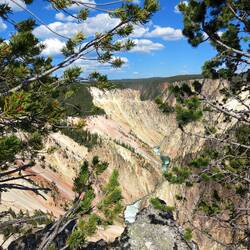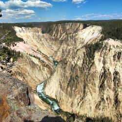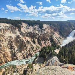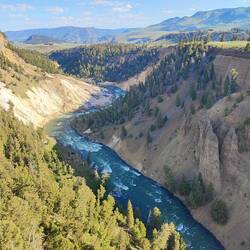 Hier genießen wir tolle Ausblicke in den Canyon, und auf den 🏞️Yellowstone River.