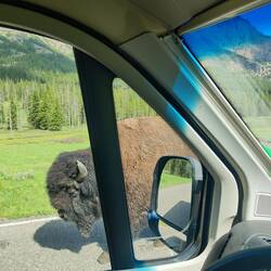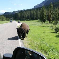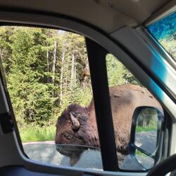 Unterwegs hält eine Herde 🦬Bisons den Verkehr auf. SieRead more