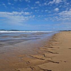 Trotz des ungemütlichen Wetters machte ich einen kleinen Strandspaziergang am Cape Hillsborough. Hier kann man bei gutem Wetter morgens und abends Kängurus am Strand sehen.
