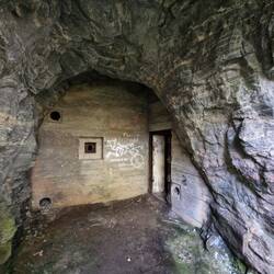 Ein Gebäude welches während des zweiten Weltkriegs durch die Deutschen teilweise aus Beton und teilweise in den Fels und die Klippen gebaut wurde.