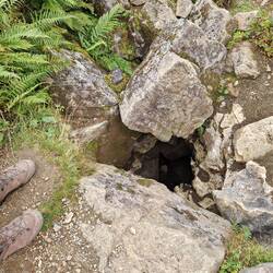 Der Eingang zur dritten Höhle war gar nicht so leicht zu finden, da es sich dabei um eine Art Erdloch handelte.