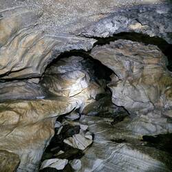 Oberhalb der Haupthöhle führte eine Leiter in die zweite Grotte, welche Decke und Wände aus weißem Marmor hatte.