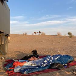 Wir haben die Einsamkeit genutzt und endlich mal wieder draußen geschlafen. Heute Morgen wurden wir dann gleich von unseren neuen Nachbarn geweckt.