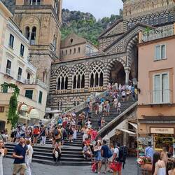 Wir genossen unsere Küstenfahrt nach Amalfi sehr. In Amalfi selber herrschte dann ein Riesentrubel mit Touristen jeglicher Provenienz. Wir bummelten so um 2 Stunden durch die schmucken Gässchen und schauten uns auch noch den sehr schönen Dom an. Bereits um 13:15 Uhr machten wir uns auf die Rückreise nach Salerno,