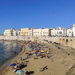 Zwischendurch mussten wir mal tanken, da sich der Zeiger immer mehr der Reserve näherte und wir von der Zeit her der Siesta immer näher kamen. Auf dem weiteren Weg legten wir eine weitere Pause in einer Strandbar ein, wo wir uns einen Eistee und ein Amarena Glacé gönnten. Wir waren nicht mehr weit von Gallipoli entfernt, so dauerte es nicht mehr lange bis wir dort ankamen.