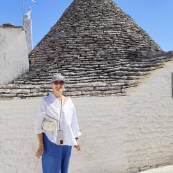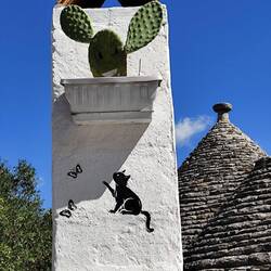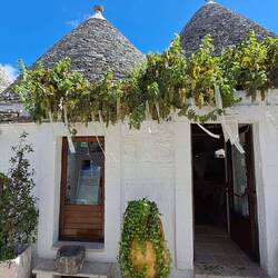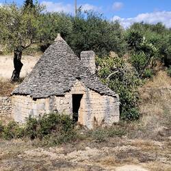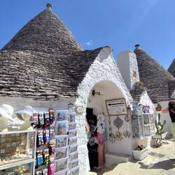 Da wir in unserer tollen Unterkunft leider kein Frühstück inbegriffen hatten, suchten wir in der Nähe des Bahnhofes ein Café, wo uns eine sehr nette Bedienung mit Kaffee und Gipfeli versorgte. Danach fuhren wir mit dem Auto eine Zeit lang wieder dem Meer entlang Richtung Norden. In der Nähe von Fasano (mit eme bsundere Gruss :•) an Fasan!) fuhren wir dann ins Landesinnere, um uns Locorotondo anzuschauen. Wir merkten aber sofort, dass das Attraktive vor allem die Aussensicht auf das Dorf war, sich aber im Inneren des Dorfes keine Besonderheiten zeigten. So entschieden wir uns unsere Fahrt fortzusetzen und Alberobello mit den berühmten Trullis aufzusuchen.