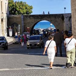 Weiterfahrt am späteren Nachmittag über landwirtschaftliches, wenig besiedeltes Gebiet nach Montescaglioso. Ein Ort hoch oben auf einem Hügel mit halsbrecherisch schmalen und steilen Strässchen. Für Claude natürlich nur eine kleine Herausforderung, welche er auch hier mit Bravour meisterte. Mitten im Dorf auf einem klassischen Dorfplatz, natürlich mit Kirche, verkündet uns der Routenplaner, dass wir das Ziel erreicht haben. Wo bitte schön soll nun hier das B&B sein??