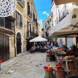 Ursprünglich wollten wir nur kurz in Bari verweilen und dann weiterfahren nach Matera. Aber das fanden wir dann doch ein bisschen schade, denn auch hier bot sich ein ausgiebiger Spaziergang an, sowohl für das Schlendern auf der berühmten Via Sparano da Bari mit all den Luxusgeschäften, wie auch die Altstadt mit ihren lieblichen Gassen und den vielen kleinen Souvenirläden. Es ist immer wieder spannend dem gestikulierten Palaver der Italiener zuzuschauen. Auffallend hier in Bari ist die Architektur von schönen Häusern.