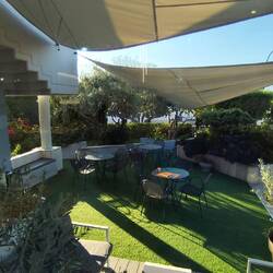 Für heute haben wir einen letzten Ruhetag eingeplant. Entsprechend wählten wir ein B&B mit einem schönen Garten aus. Aber wie sich herausgestellt hat, war das ein arger Flop. Der junge Sohn, der gerade mit seinem Kumpel auf der Vespa ausgehen wollte und etwas ungeduldig auf uns warten musste, wollte daher die Übergaben raschmöglichst erledigen. Uns aber war es in keinster Weise wohl dabei, weil ausser dem Zimmer alles bereits winterfest eingepackt war. Wir dürften aber den Garten mit den abgedeckten Tischen und Stühlen schon anschauen, meinte der Sohn (!!). Wir beschlosse, das Zimmer - obwohl bereits bezahlt - nicht anzunehmen. So forderten wir den Sohn auf, seine Mutter zu kontaktieren. Auf ruhige Art, aber deutlich und klar erklärte Claude der Frau, dass wir wieder gehen würden. Währenddessen schaute ich bereits nach einer anderen Möglichkeit, und wir buchten in einem Hotel ganz in der Nähe. Nach dem Einchecken erholten wir uns von dieser Aufregung, hier in einem sehr schönen und gepflegten Garten und verbrachten einen ruhigen, gemütlichen Nachmittag.