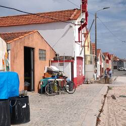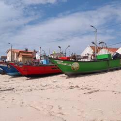 Nach Vila do Conde ging es zuerst eine beträchtliche Strecke dem Strand entlang, wo die Strandbetreiber daran waren, sich auf die kommende Saison vorzubereiten. Dazu stellten sie Holzgerüste bereit, die sie dann nur noch mit den Überzügen versehen müssen, wenn es soweit ist.