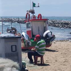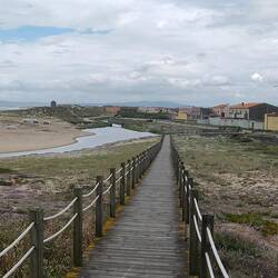 Claudia und Kathy stöberten auf dem benachbarten Markt noch rum und fanden schließlich auch noch zwei Kleidungsstücke, die sie kauften. Nach Fao überquerten wir auf einer größeren Brücke einen recht breiten Fluss, um anschließend links abzubiegen und dem Fluss wieder zu folgen. Schließlich erreichten wir das Dorf Esposende, ein touristisches Städtchen, das sich noch im Vorsaison-Schlummer befindet. In einem kleinen Strandcafe kehrten wir ein und erfrischten uns.