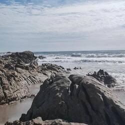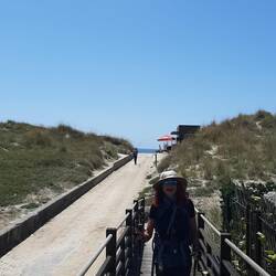 Das schöne Anblick des Atlantiks liess uns die Müdigkeit vergessen. Erst auf den letzten Kilometern spürten wir eine Schwere in den Beinen. Unterwegs ließen wir uns zur Erfrischung und Stàrkung immer mal wieder in einer schönen Strandbar nieder, Auch haben wir Bekanntschaft gemacht mit einer Amerikanerin, wo sich herausstellte, dass wir in der gleichen Pension übernachten. So sind wir eine Zeitlang zusammen gelaufen und haben auch das Abendessen gemeinsam eingenommen. Der Host der heutigen Unterkunft, ein Gastgeber mit Leib und Seele, hat mit uns die weitere Unterkunft gesucht, offenbar ist das übers Weekend nicht ganz so easy. Seine Art hat uns grosszügig darüber hinweg sehen lassen, dass das Bett viiiel zu hart war.もっと詳しく
