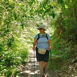 Gestärkt, aber weniger motiviert als die vergangenen Tage - mir ging es jedenfalls so - zogen wir los. Die vielen Pilger auf dem Weg, der alsbald einer Pilgerautobahn glich, sowie die Biker gingen mir zunehmend auf die Nerven. Was mach ich also mit diesem Ärger, einer Emotion, welche mir eigentlich auf dem Pilgerweg bis anhin noch nie begegnet ist? Das passt doch gar nicht zum Camino! Und ja, schließlich kann ich ja nicht den Camino für mich allein beanspruchen. Aber mir wird bewusst, dass Hektik, Lärm und viel «Geschwätz» überhaupt nicht kompatibel sind mit dem Camino. Interessant auch: Je mehr Menschen, desto anonymer die Begegnungen. Auch wieder verständlich, denn dann müsste man andauernd «Buen camino» rufen. Ich erinnerte mich daran, dass ich eben genauso aus diesem Grunde auf dem Camino Frances jeweils später los bin, sodass die meisten schon lange unterwegs waren. So kam ich wohl abends später an, dafür hatte ich meine Ruhe. Nur geht das nicht immer mit den Temperaturen auf, denn bei 30° tut man gut daran, eben frühmorgens loszugehen, denn ab 15/16h wird es fast unerträglich heiss. Wir haben dann auch unser Tempo gedrosselt und haben da und dort angehalten, wenn eine Bar/ein Café vorhanden war, und auch etwas getrunken. Auch haben wir beschlossen, uns für den letzten Teil ein paar km zu schenken, weil wir keine Lust hatten, einer vielbefahrenen Strasse entlang zu laufen. Claude suchte uns daher eine Busverbindung heraus. Pünktlich waren wir an der entsprechenden Bushaltestelle. Aber ja klar doch, kein Bus kam!!! So entschieden wir uns Autostopp zu machen. Das Glück war uns hold, denn kaum gesagt und getan, fuhr ein Taxi daher, das uns nach Caldas de Reis führte. 6€ hat uns dieser Spass gekostet. 10’ später konnten wir im Hotel einchecken. Abgesehen davon hätte mich schon noch interessiert, ob auch in meinem «hohen» Alter das «Autostopp machen» noch funktioniert hätte!
