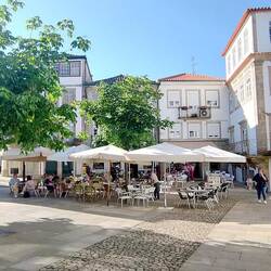 Villa Nova de Cerveira ist eine sehr gepflegte, gehobene Stadt, mit Kultur und Stil. Das haben wir auch bereits in der Einrichtung der Jugendherberge bemerkt, wo wir übernachteten, welche notabene früher ein Primarschulhaus war. Die Dame an der Rezeption erzählte uns, dass sie als kleines Mädchen in dieser Schule war und sich gerne daran erinnere, weil sie einen so tollen Lehrer gehabt habe. Es gibt also ausser den Jubin's etc. auch sonst noch gute Lehrer🥰!