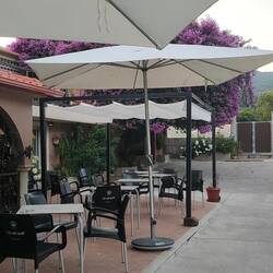 Eine Weile später überquerten wir eine große Strasse und setzen unseren Weg fort. Nach ein bis zwei Biegungen erschien auf der rechten Seite ein neueröffnetes Restaurant, wo wir uns etwas zu trinken bestellten und im schönen Garten unsere mitgebrachten Esswaren verspeisten.