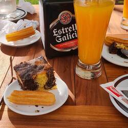Am Morgen liessen wir uns Zeit mit dem Aufstehen und kehrten ins erste Café in der Nähe unseres Hotels ein, wo wir uns mit Gipfel und frischem Orangensaft eindeckten. Anschliessend unternahmen wir einen ausgedehnten Stadtrundgang und kehrten am frühen Nachmittag in ein Strassencafe ein. Da stellten wir fest, dass es an der Zeit war, uns die nächsten Tage bzw. die Übernachtungen bis nach Santiago zu organisieren. Bald stellten wir fest, dass es ziemlich schlecht aussah mit den Unterkünften, besonders in Santiago. Es stellte sich heraus, dass dort just an diesem Wochenende ein Musikfestival stattfindet, wo Leute aus ganz Spanien anreisen und sämtliche Hotelzimmer belegen mit entsprechenden Auswirkungen auf die Zimmerpreise. Da gab es Zimmer in Massenschlägen, die über 100 Franken pro Übernachtung kosteten. In der Zwischenzeit meldete sich Kathy bei uns, die auch schon Panik schob wegen den raren Übernachtungsmöglichkeiten. Sie kam zu uns ins Café und wir berieten gemeinsam, wie es weitergehen sollte. Nach langen Beratungen und Schiebereien konnten wir schließlich eine gute Lösung für alle Tage finden. Das ganze Prozedere nahm schließlich insgesamt ungefähr drei bis vier Stunden in Anspruch 🥴 . Verständlich, dass die Frauen zur Entspannung noch einen kleinen Rundgang durch die Läden der Altstadt unternehmen wollten 😆, während ich mich in einem Park auf eine Bank setzte und es mir dort gemütlich machte. Doch es dauerte nicht lange, da wurde es mir zu kühl und ich beschloss ins Hotel zurückzukehren und mich aufzuwärmen. Rund eine Stunde später kam auch Claudia ins Zimmer, wo wir uns für das Nachtessen bereit machten. Ich hatte in der Zwischenzeit einen Tisch in einem Restaurant in der Altstadt reserviert, der im TripAdvisor empfohlen wurde. Die Portionen waren gut zubereitet/gekocht, jedoch mickrig und dies zu absolut übersetzten Preisen. Wir hatten noch nie so wenig für so viel Knete bekommen. Aus lauter Frust schrieb ich noch am Tisch eine vernichtende Rezension im TripAdvisor. Unter den Bildern ist noch ein Bild der Lasagne für 13 € zu sehen. Die Guacamole-Sauce wurde wenig stilvoll in einer Tube serviert die vor allem mit Luft gefüllt war 🙄. Allerdings hat jede Schattenseite auch eine Sonnenseite: Der Vorteil war, dass wir an diesem Abend nicht mit überfüllten Mägen ins Bett steigen mussten 😄.もっと詳しく