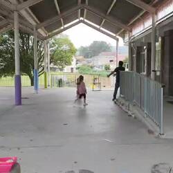 Anschliessend machten wir uns auf den Weg. Unterwegs kamen wir bei einer Kirche vorbei, wo gerade ein Begräbnis im Gange war. Es machte den Anschein, dass das ganze Dorf zusammen gekommen war, um der verstorbenen Frau das letzte Geleit zu geben. Gemäss Anschlag handelte es sich um eine Frau, die 91 Jahre alt geworden war. Bevor der Leichenzug heranfuhr, begab sich ein Mann in den Glockenturm und begann mit den verschiedenen Glocken von Hand eine rituelle Melodie zu spielen. Alsbald setzen wir unseren Weg fort, und nach einer Weile erblickten wir auf der linken Seite eine Schule, wo offenbar die Kinder gerade Pause hatten. Aus einem Zimmer schaute ein Mädchen, das ungefähr zehn Jahre alt war, freundlich heraus und grüsste uns. Dann war plötzlich der Lehrer zu sehen. der auf uns zukam und erklärte, dass eben ein Kind eine Jacke oder etwas Ähnliches auf das Dach geworfen hätte und er nun jemanden anrufen müsse, um das wieder herunter zu holen. Das Dach war sehr hoch; das hätte sicher eine halsbrecherische Aktion abgegeben. Plötzlich begab sich der Lehrer ins Schulzimmer zurück und kam mit einer Schweizer Fahne wieder zurück. Zugleich begann auf dem Pausenplatz ein Kind zu weinen und der Lehrer versuchte das Kind zu trösten.