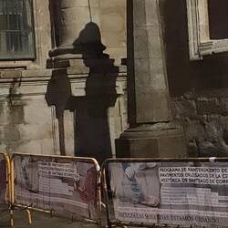 Mit den beiden verbrachten wir einen lustigen Abend. Zum Abschluss liefen wir noch zur Kathedrale, wo zu nächtlicher Stunde hinter einer Säule die Beleuchtung eine Pilgerfigur als Schatten an die Wand wirft.