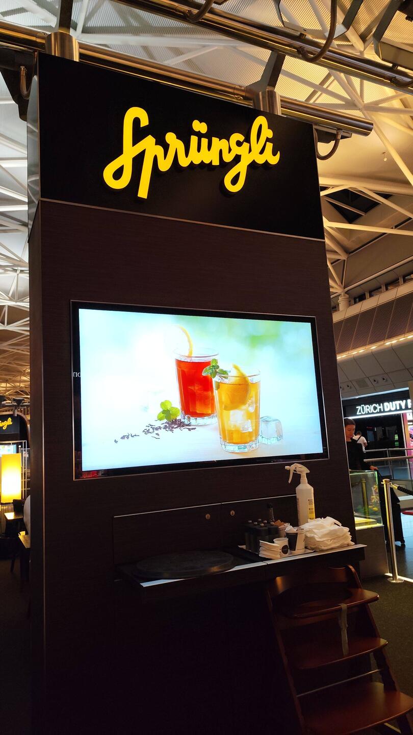 Im Sprüngli gönnten wir uns zur Einstimmung auf unsere Reise ein feines Birchermüesli, einen Brioche und einen Café.