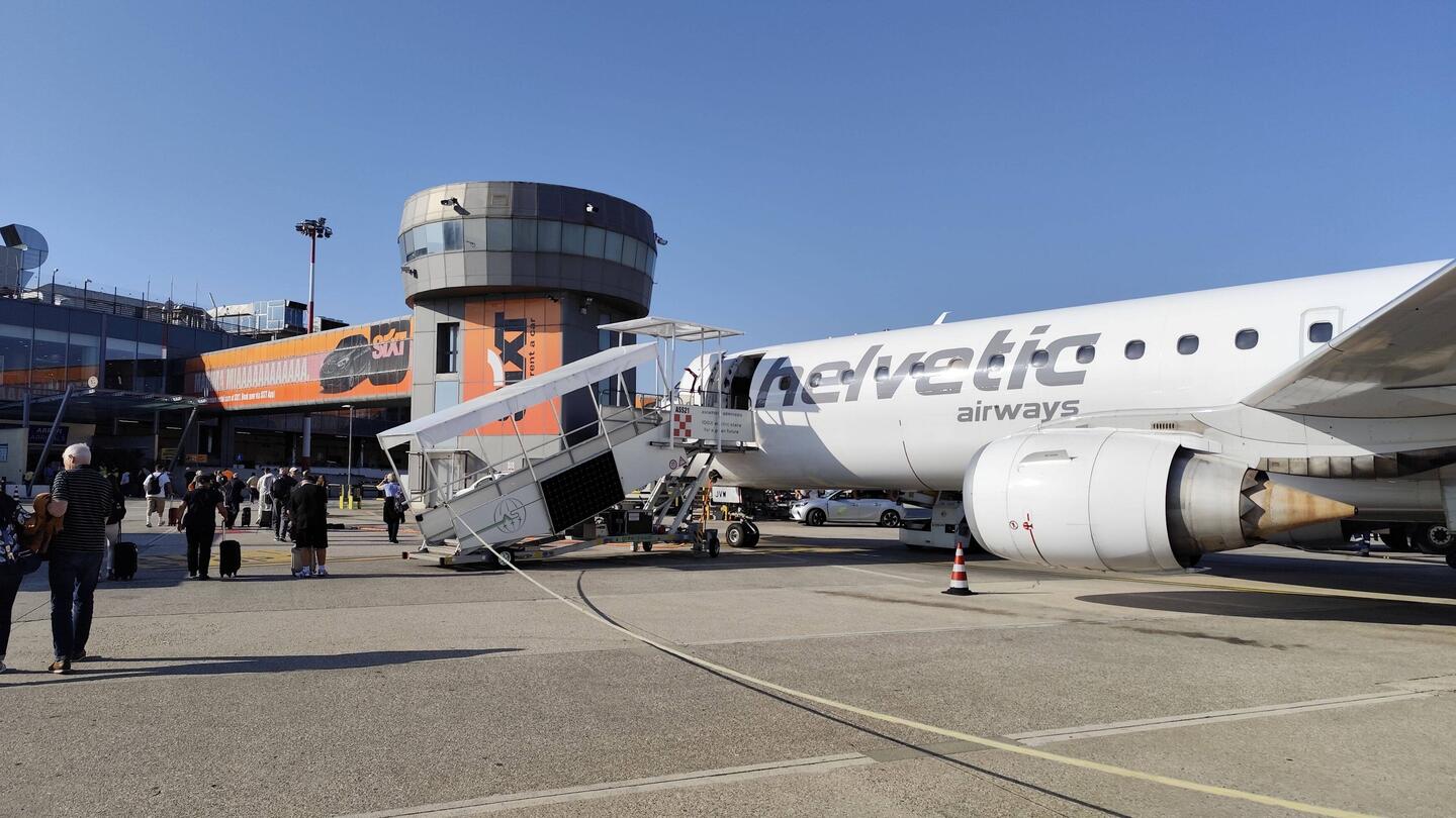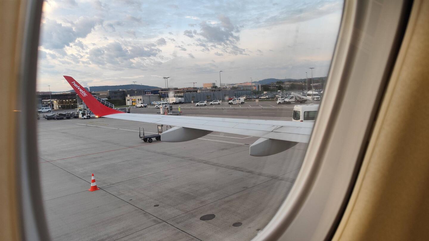 Mit rund 10 minütiger Verspätung bewegte sich das Flugzeug aufs Rollfeld.