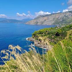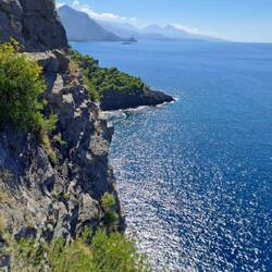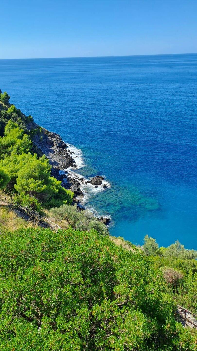 Aber für heute haben wir uns ein bisschen eine längere Fahrt vorgenommen. Als erstes aber wollten wir einen Weg ablaufen, der sich Skywalk nennt. Eine kreative Nutzung der ehemaligen Straße von Cersuta (wo wir übernachteten) in den Hafen von Maratea. Heute führt die Strasse durch einen Tunnel. Zeitweise musste ich mich am Geländer festhalten, die Höhenangst! Aber die Aussicht auf das türkisfarbene Meer, die steinige Küste und der Duft verschiedener wilder Kräuter war trotzdem einfach nur schön.