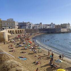 Zwischendurch mussten wir mal tanken, da sich der Zeiger immer mehr der Reserve näherte und wir von der Zeit her der Siesta immer näher kamen. Auf dem weiteren Weg legten wir eine weitere Pause in einer Strandbar ein, wo wir uns einen Eistee und ein Amarena Glacé gönnten. Wir waren nicht mehr weit von Gallipoli entfernt, so dauerte es nicht mehr lange bis wir dort ankamen.
