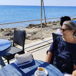 Später fuhren wir los und verließen die Amalfiküste Richtung Apulien. Eine spannende und sehr abwechslungsreiche Fahrt über sehr hügelige zum Teil einsame Landschaften, dann wieder die schönsten Aussichten aufs Meer. Kurz vor unserem Tagesziel Taranto machten wir einen Abstecher an einen Strand, wo wir in einer noch offenen Strandbar etwas tranken. Wir konnten uns nur zu gut ausmalen, wie es da in der Hochsaison zu und hergeht. Offiziell ist die Sommer-Saison seit Ende August zu Ende. Aber wir fanden den breiten Strand gerade so leer besonders schön.