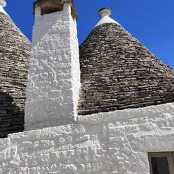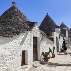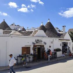 Diese kunstvoll gebauten Trulli's sind ganz ohne Mörtel, ursprünglich im 17/18. Jh. gebaut worden. So konnten damals die Menschen die sogenannten Hausbesitzsteuern einsparen, weil sie ihre Trulli's theoretisch kurzfristig wieder abbauen hätten können. In einem dieser kleinen und sehr fotogen Gassen haben wir uns später einen feinen Lunch gegönnt. Im Anschluss sind wir wahrlich dem Touristenstrom entflohen und weiter nach Monopoli gefahren.