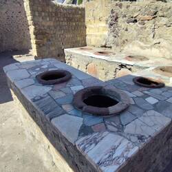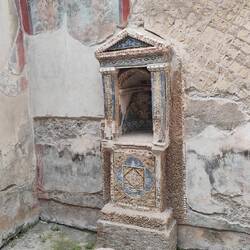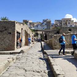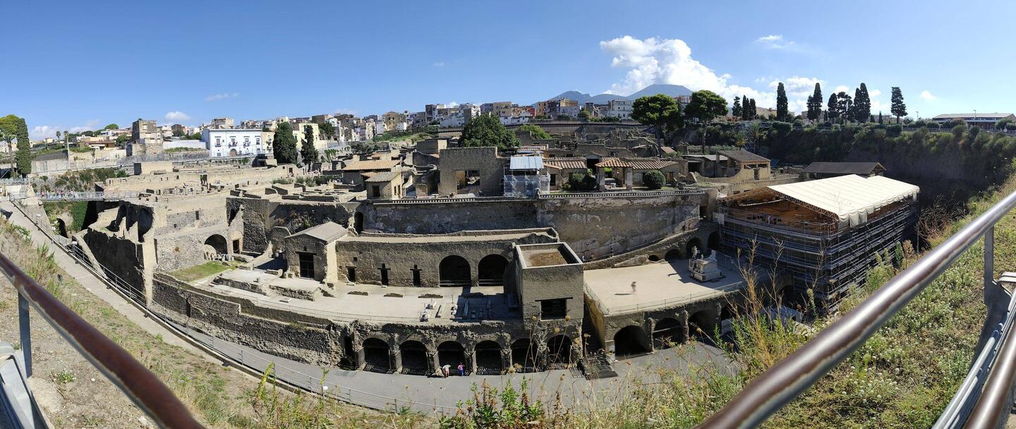 Am Morgen haben wir in unserem Hotel ein wunderbares Frühstücksbuffet angetroffen, wo wir uns entsprechend gestärkt haben für den heutigen Tag. Die erste Etappe führte uns nach Herculaneum, dem zweitwichtigsten Zeitzeugen des Ausbruches des Vesuvs im Jahre 79 nach Christus. Wir suchten uns eine Route aus, die möglichst wenig von Staus beeinträchtigt war. Trotzdem benötigten wir ungefähr für 17 km eine dreiviertel Stunde. Wir liefen nach dem Eingang ungefähr zwei Stunden in den Gemäuern herum, wo wir uns per Audioguide führen und uns von den diversen besonderen Gebäulichkeiten inspirieren liessen. Es war eindrücklich zu sehen, wie in der damaligen Zeit die Menschen lebten und vom Vulkanausbruch überrascht wurden. Speziell beeindruckend waren die Bilder der Bögen am ursprünglichen Hafen, wo noch verschiedene alte Skelette zu sehen waren von den Menschen, die überrascht wurden als sie versuchen, über das Meer zu fliehen.