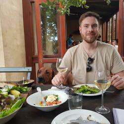 SüdafrikaTravelerShow tripAdd to bucket listRemove from bucket listShareDay 11Friday, February 22, 2019 at 1:39 PM ⛅ 28 °C Altitude: 200 m South AfricaSanddrif-33.99833, 24.0116733°59’54” S 24°0’42” EFynboshoek Cheese Farm February 22, 2019 in South Africa ⋅ ⛅ 28 °C Bester Käse und bester Salat den wir je gegessen haben !!! See translation0 likes Show trip