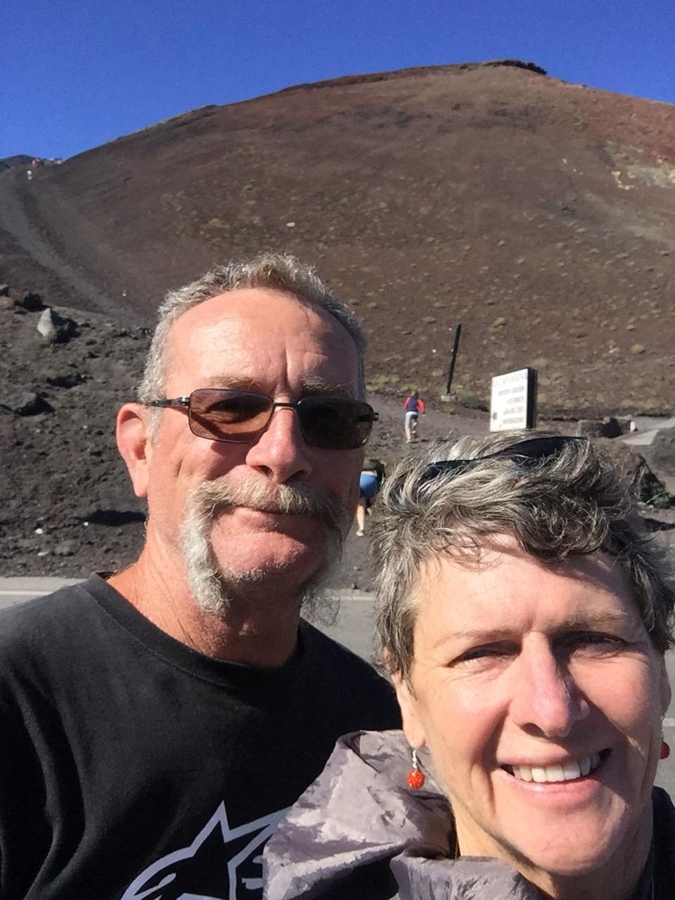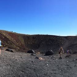 The climb up the mountain in the car was extremely interesting with being able to see the various Lava flows she has spewed out over the last few centuries... some are quite scary where they have ended up... the higher we go the less vegetation there is, but still there are green patches ... giving way to volcanic stone then ash’s the higher we go... some parts are a brown other parts are jet black.... in the winter this mountain is covered in deep deep snow, hence once we get higher we can see the Ski Lodges towards a higher section of the mountain.....once there you could see the higher peaks with people climbing them.... and a smaller cater from the 1986 eruption, the higher peak was from the 2001 eruption...we could see the biggest peak, it was higher than what we had parked at to see, but apparently you have to do a tour to see the active one... when we left down below it as 41c as we climbed it went to 26c by the time we hit the top it was 20c and extremely cold and blowing a gale.... we hoped out and walked towards the lower crater from the 1986 eruption, passing 2 dogs dug in to the volcanic ask... unreal to see they actually looked dead, but I am sure they were having a good sleep and keeping warm... at least I hope so...