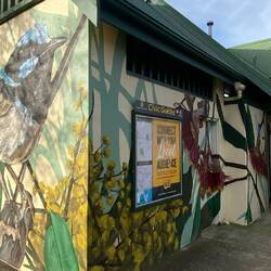 A long trip getting there after dark at 6pm….We did stop at Yarragon for a cuppa...they had their public toilets all done with Art looked great…
