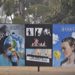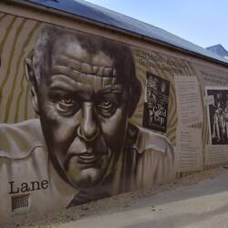 The four-mural silo art work at St James was probably his best-known work before he commenced the Iddles Lane Mural.