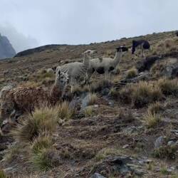 Eine absolut surreale Gegend umgibt uns, wir kommen am Basiscamp für die 6000er Wanderungen vorbei, ein paar Leute haben dort vor dem Gewitter Schutz gesucht. Wir sehen große Herden mit Lamas 10m von uns entfernt und kommen ebenso an einer großen Menge toter Tiere vorbei. Teilweise nur noch Schädel und Gerippe lassen ein Tier erahnen. Hier oben ist jeder auf sich alleine gestellt und überlebt - oder eben nicht.