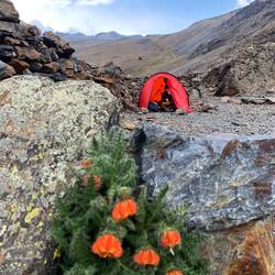 Nach 1-2 Stunden ist das Gewitter vorbei und wir wagen uns wieder aus dem Zelt. Schon schmelzen die Hagelkörner und es wird wieder sehr warm, sodass wir uns dazu entscheiden den See zu umrunden und weiter in die Umgebung vorzudringen.