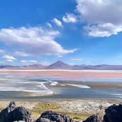 Und es geht wieder weiter, wir erreichen diverse Lagunen (Die Stinkende, die Weiße, die Grüne, die Rote,...). All die Lagunen haben eine Besonderheit: Sie beherbergen alle unterschiedliche Arten von Flamingos. In einer Lagune kommen wir so nah an die Flamingos ran, dass man sie beinahe berühren kann, sie fühlen sich scheinbar nicht sonderlich gestört von uns.