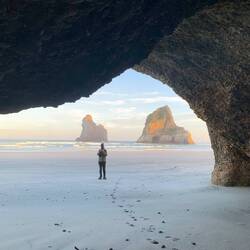 Also auf gehts über die Scenic Route zum Wharaiki Beach! Der Van kämpft sich die kurvige Straße an der Küste entlang, und wir genießen die tropische, mit Palmen gesäumte Fahrt. Hier und da, wenn es uns passt, machen wir Pause, kochen einen Kaffee oder Essen ein paar Kleinigkeiten. Mit unserer App "kiwicamps" finden wir einen Platz, an dem man kostenlos übernachten darf und bereiten uns auf eine kleine Sonnenaufgangswanderung am nächsten Tag vor.